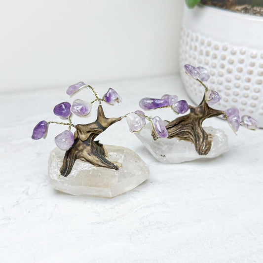 Crystal Bonsai Trees with Quartz Base | Various Stones