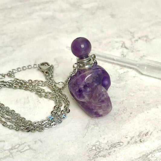 Crystal Skull Potion Bottle Necklace - Various Crystal Options