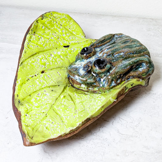 Handmade Ceramic Leaf Frog Wall-Mounted by Local Artist, Cate Tylor