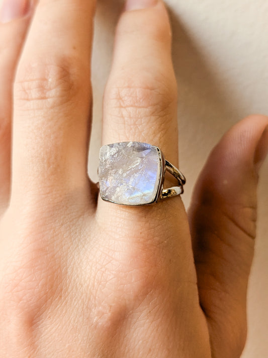 Rainbow Moonstone Druzy Sterling Silver Rings