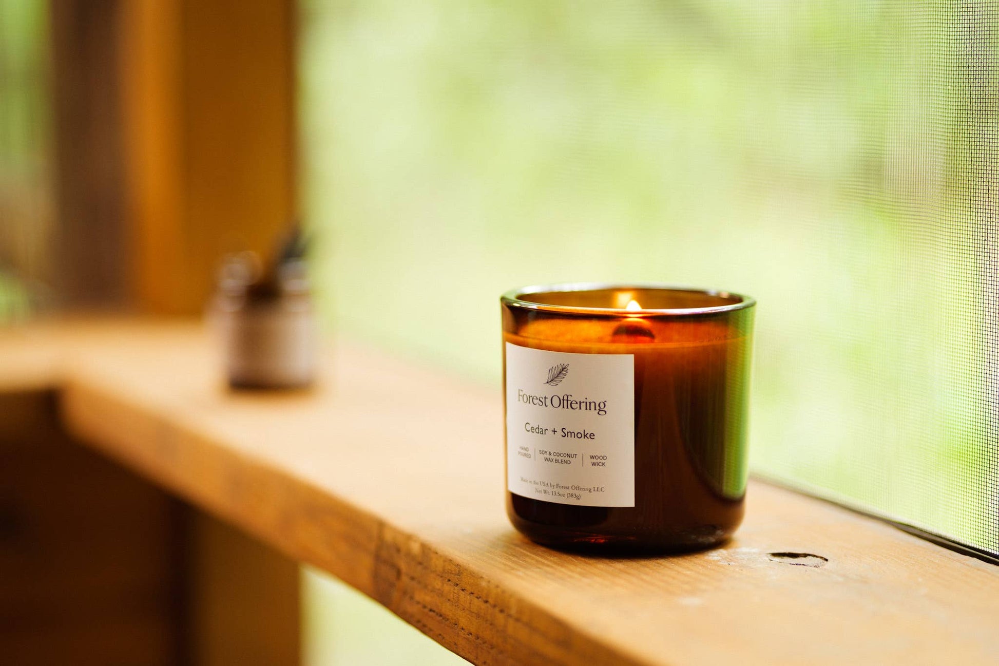 We’re excited to welcome the Forest Offering candle line into our space. These hand-poured candles and crafted with 100% soy & coconut wax and non-toxic fragrances that feel like spells in a jar. Note Profile: Top: Citrus, Cinnamon, Chrysanthemum Middle: Apple, Berry, Green Leaves Base: Pecan, Cedar Candle Information: 5.5oz Candles - Come with a matte black screw top lid. 13.5oz Candles- Come with a black lid. All candles have an ethically sourced wooden wick. Amber Jars Low profile wick clips for a longer burn. Soy + Coconut Wax Blend. Non-toxic Fragrance Oils + High quality essential oils.Note Profile: