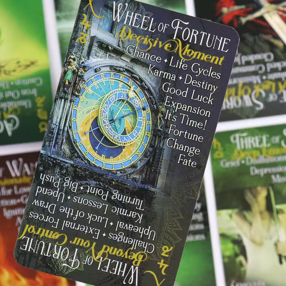 iN2ITarot Keywords Edition is a tarot deck with 78 tarot cards and 5 bonus oracle cards that can be read in the upright and reversed position. The Keywords Edition of the iN2IT Tarot has a Peacock-colored solid back with an image, title, key phrase, and KEYWORDS (distinguishing it from our Classic Edition which has none) on the front of each tarot card. Tune into your deeper knowing to gain higher perspectives on life situations for you and others ~ all without having to look up meanings in a book or spend long hours studying/memorizing the meanings of cards.