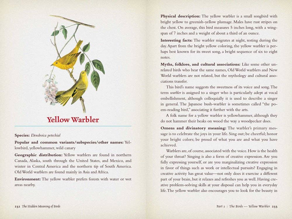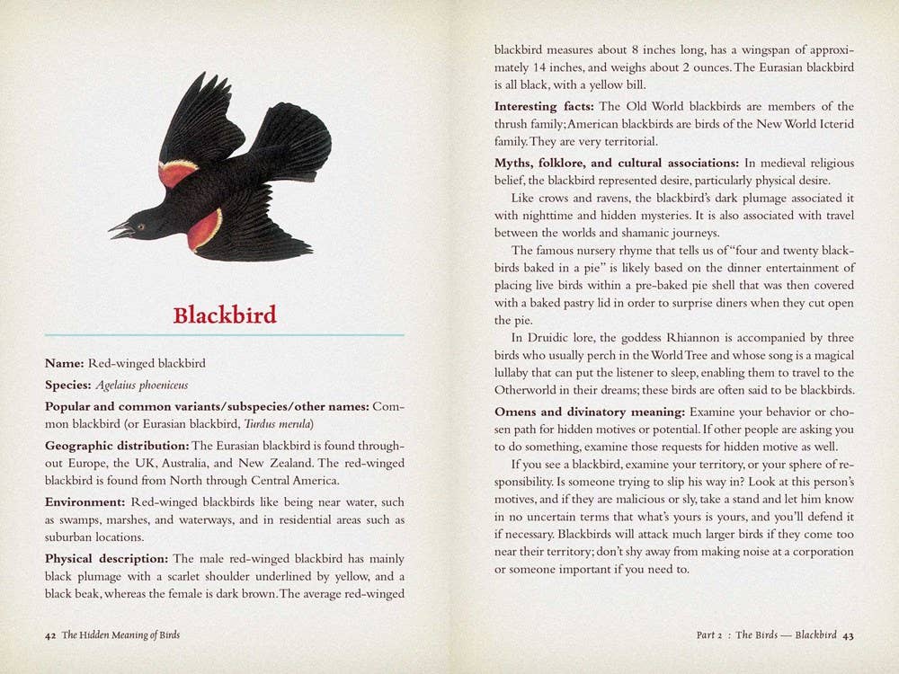 The Hidden Meaning of Birds--A Spiritual Field Guide: Explore the Symbology and Significance of These Divine Winged Messengers Paperback book. A field guide to birds - and to their symbology & significance. Birds in nature, in history, in folklore, and their meanings/associations. Gorgeous images of birds on every other page, along with the information. For birders, Wiccans, and nature-lovers everywhere.