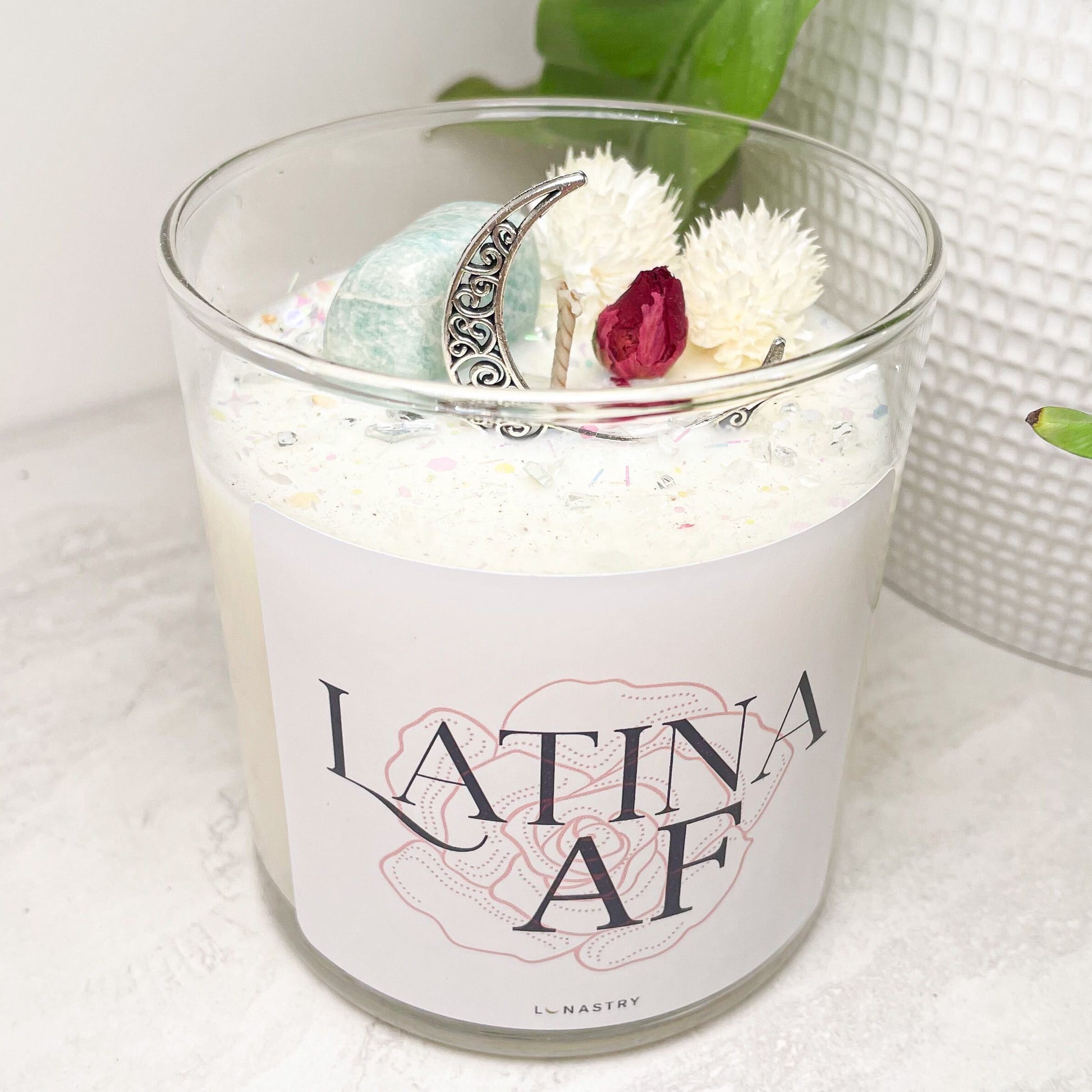 Latina AF soy wax candle with crystal