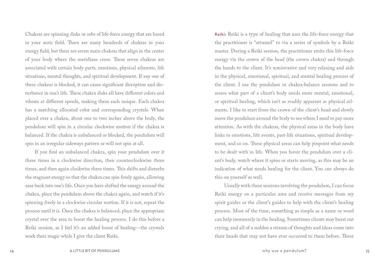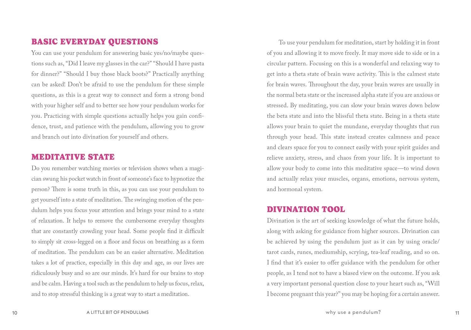With every swing of the pendulum, you can develop your spiritual energy. Dani Bryant, a green witch, provides an easy-to-follow guide that explains how to choose or craft your pendulum, and use it for dowsing and divination. You'll find rituals for clearing negativity, balancing chakras, making contact with the spirit world, meditation, generating accurate answers to your questions, and much more. Hardcover Book, 5 X 7 inches; 128 pages.