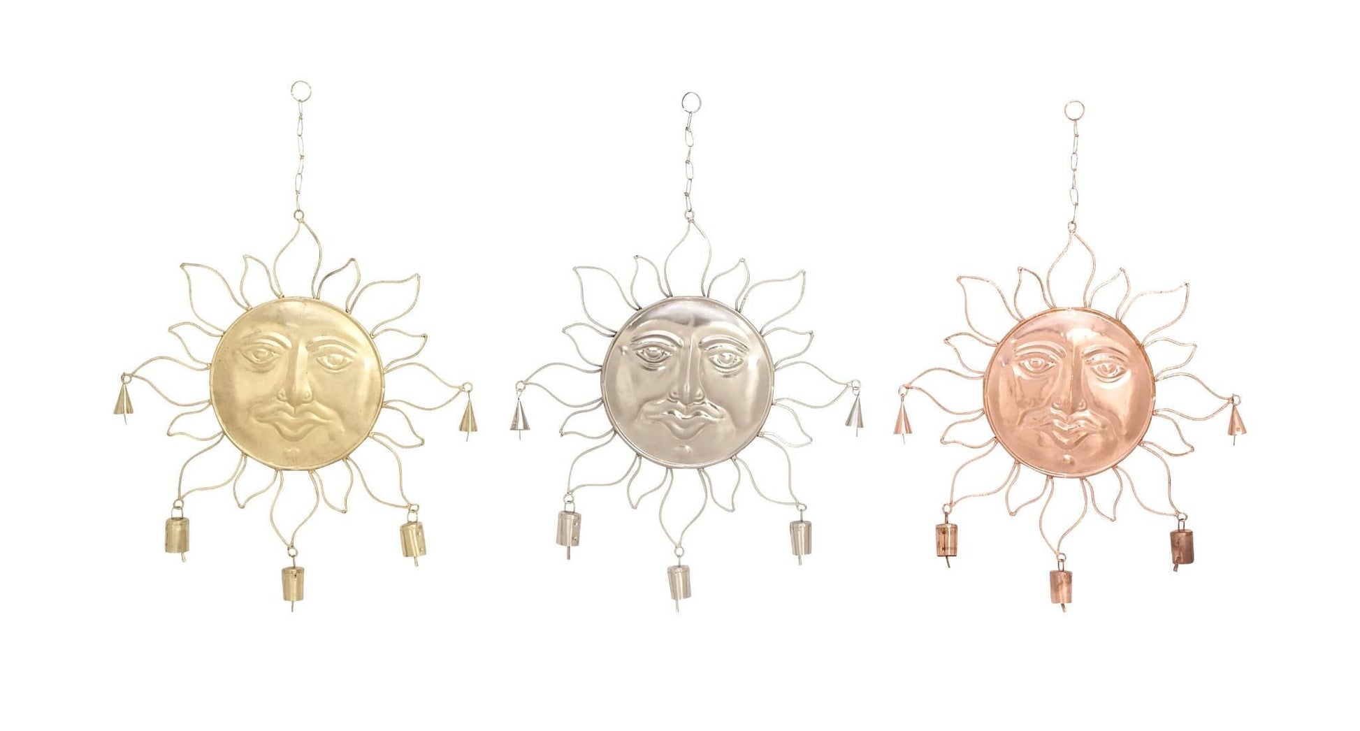 These eclectic style inspired design sun bells will work together as a set but can be used separately on different windows, porches or any living space for a light soothing sound. This item ships in 1 carton. Metal windchime makes a great gift for any occasion. Suitable for indoor use only. Made in India.