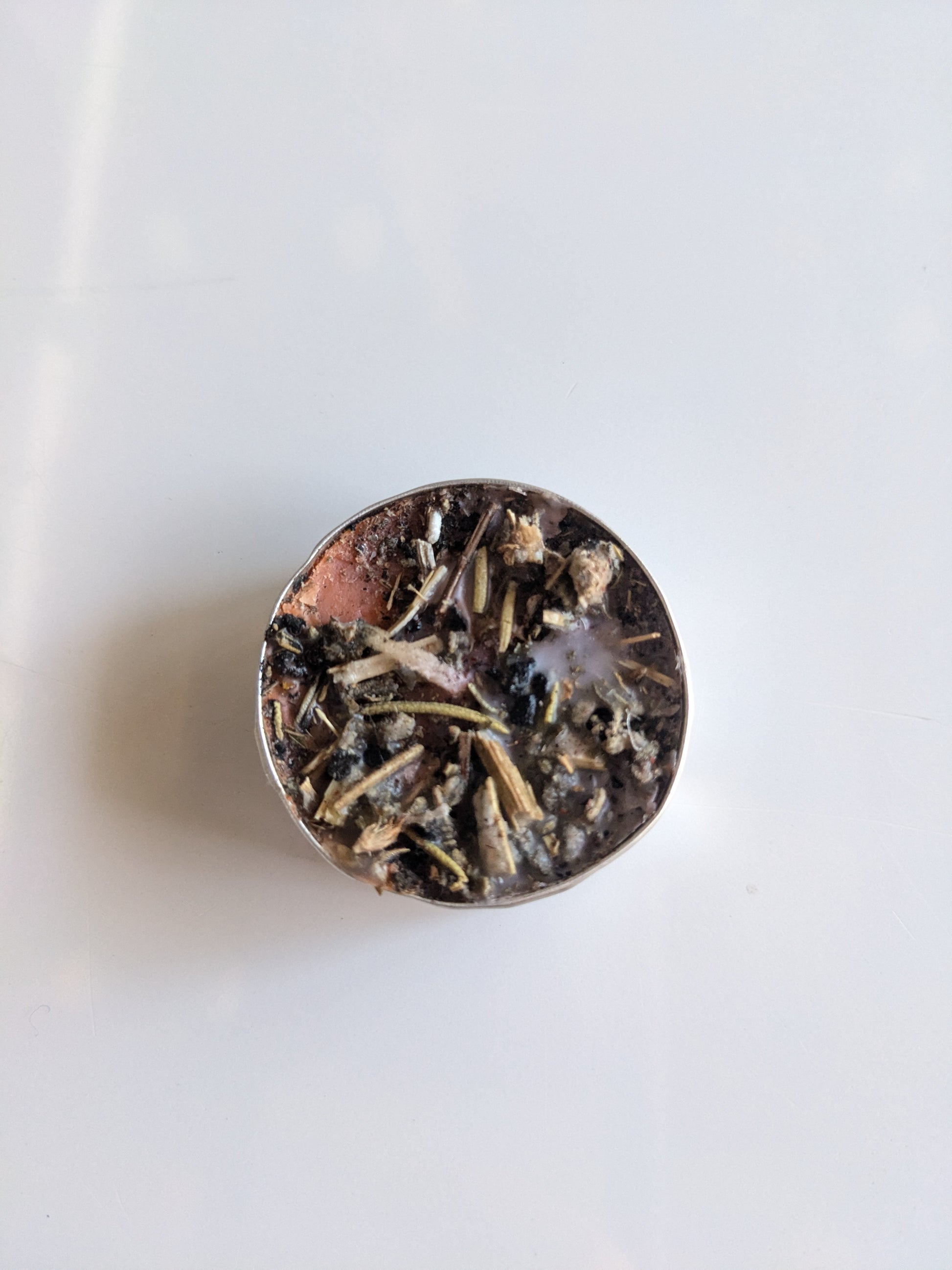 Each spell candle is filled with herbs, flowers, anointing oil, crystals, and all my intentions.