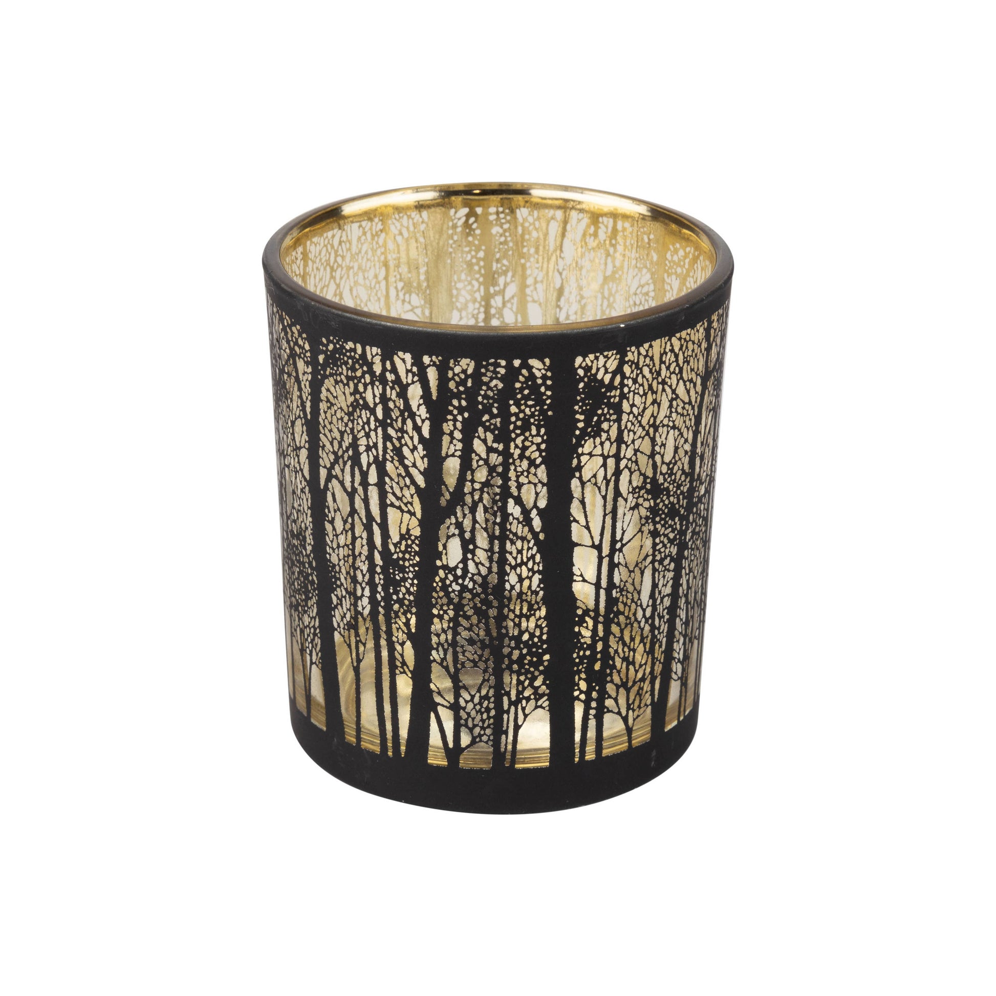 Winter Scene Glass Candle Holder Table Piece | Clear Glass with Black Rim & Tree Design 4"